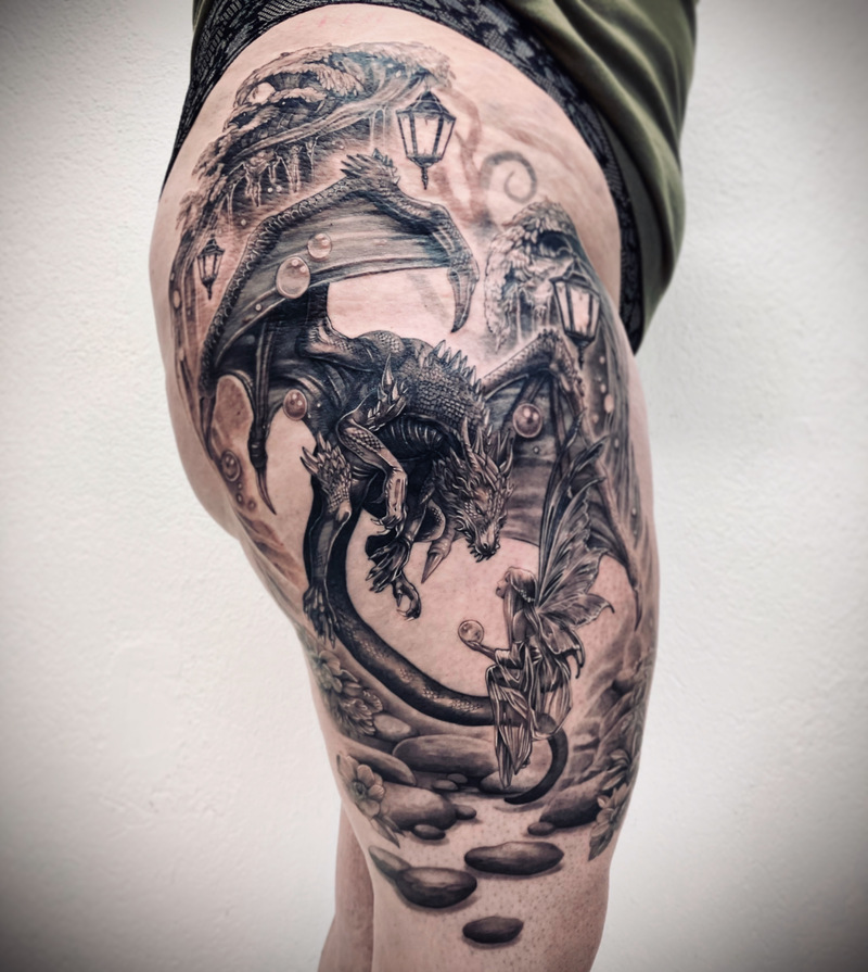 Tatouant depuis 2009, je travaille de manière polyvalente et explore volontiers vos thématiques dans des styles variés. Mes préférences se portent sur les mondes animalier, végétal, floral et ornemental. Je travaille aussi les portraits et plus largement les personnages, j'aime également les motifs ayant trait à l'univers amérindien ou chamanique.